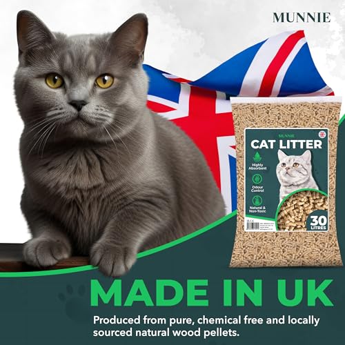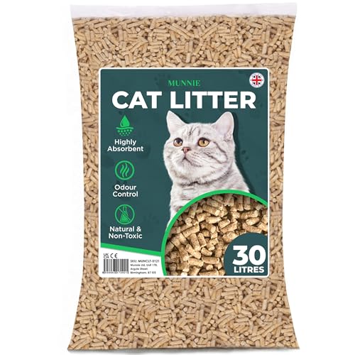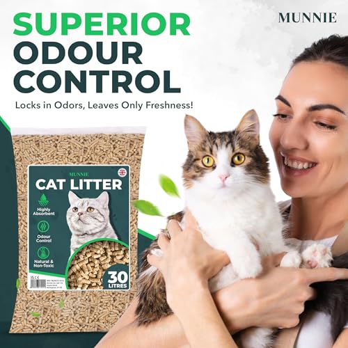Munnie Cat Litter 30L – Biodegradable, Dust-Free, Unscented Wood Pellet Cat Litter for Cats & Kittens – Ultra-Absorbent, Non-Clumping, Wood-Based Litter for Maximum Odor Control & Moisture Lock