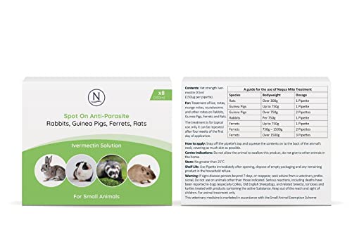Specification: Naqua 8 x Anti-Parasite Spot On Pipettes. Treatment for Rabbits, Ferrets, Guinea Pigs, Rats & Chinchilla. Vet Strength, kills fleas, lice, mange mites