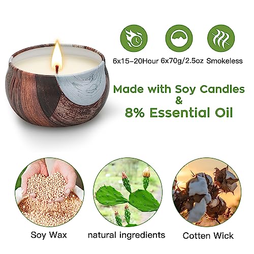 Natural Soy Wax Candle 6 Pack,Wood Candle Box,Womens Gift Sets,Scented Candles Gift Box,Candle Sets for Women Gifts,House Warming Gifts New Home,Candle Gift Set,Candles Gifts for Women