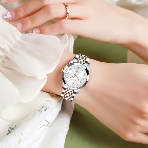 Quartz movement and battery imported from Japan provide accurate timing and service. Rose Gold Strap and Stainless Steel Case Cover; Stylish Dial Design; Sparkling Crystal Stone Inlay; Scratch Resistant Glass; Easy-to-Read Timestamp