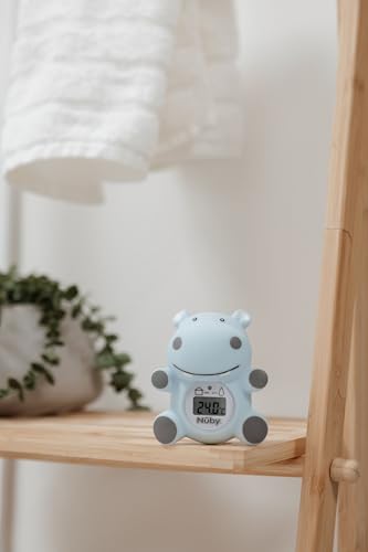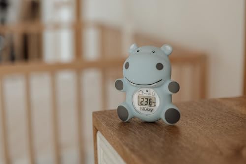 Nuby Hippo Baby Bath Thermometer – Digital Thermometer with Easy to Read Screen | BPA Free | Bath & Room Thermometer | Suitable from Birth (Blue)