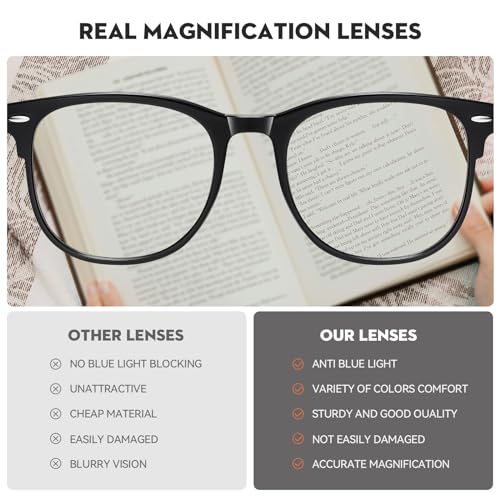 [High-Quality Lenses] – Accurate magnification strength makes useful vision zone increases . The lenses are clearer than regular ones and offer higher precision, restoring true colors while blocking harmful blue light. With anti-blue light and UV400 lenses, our womens reading glasses filter glare, ensuring clear vision for an optimal reading experience, whether you’re reading books or using digital devices