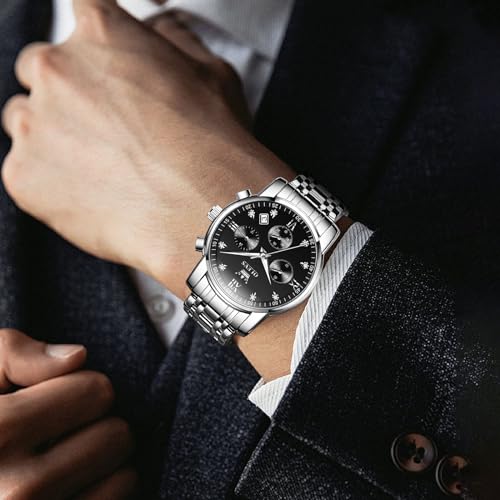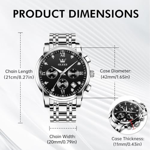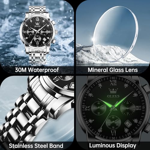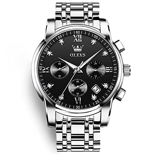 Specification: OLEVS Men’s Chronograph Watch, Gold Silver Stainless Steel Analog Quartz Watch, Waterproof Multi-Function Dial with Date Diamond Watches for Men