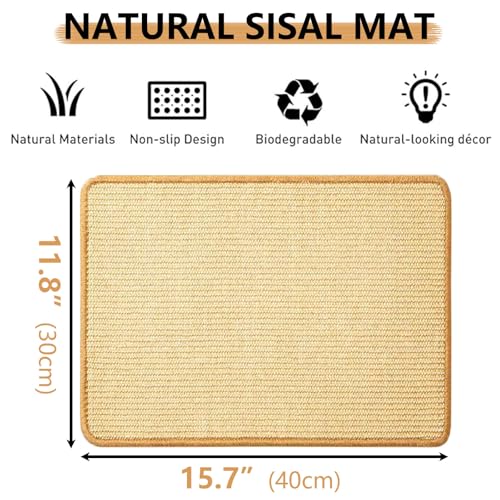 NATURAL SISAL MATERIAL — This bunny scratch mat made of 100% natural sisal fiber, providing a safe and healthy scratching surface for rabbits to satisfy their natural scratching and chewing needs, and the edges are hemmed, which will not stab the claws, beautiful and pet friendly.