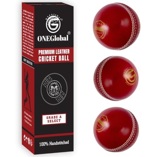 Specification: ONEGlobal Select Leather Cricket Ball | 100% Handcrafted, 156g – 5.5oz, 4-Piece Construction | Ideal for T20, Net Practice, Training etc.