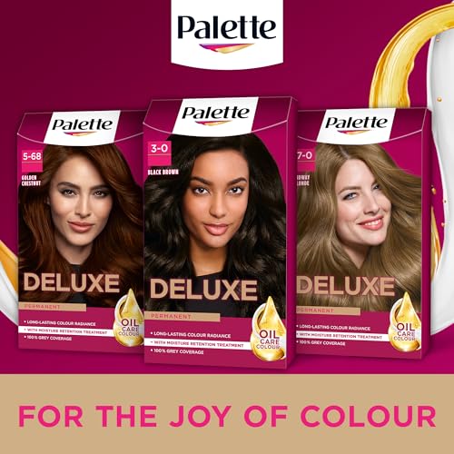 Palette Deluxe Creme Colouration – The joy of colour with Deluxe. Permanent hair dye with 100% grey coverage.