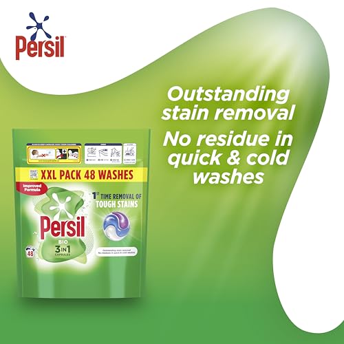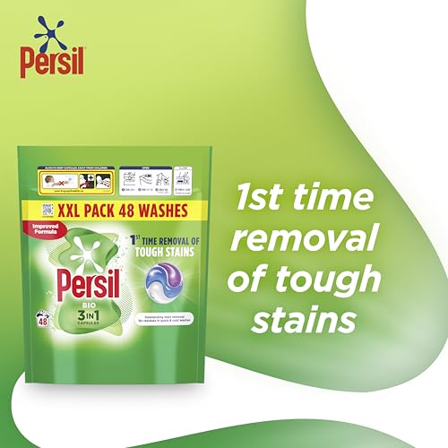Persil Bio 3 in 1 Washing Capsules 1st time removal of tough stains outstanding stain removal in quick & cold washes 48 washes