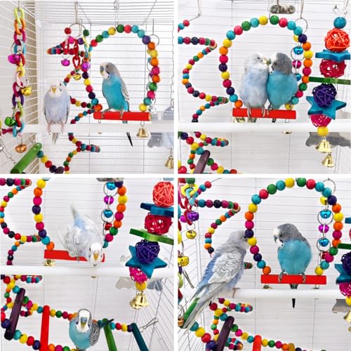 【Great Gift for Birds】Our bird swing toy set offers a fun playtime experience with pets and get spiritual pleasure, enhancing the well-being of your feathered friends. Suitable for parrot, parakeets, cockatiels, lovebirds, ringneck macaws finches mynah budgies, finches and etc.