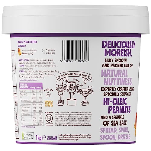 Specification: Pip & Nut – Smooth Peanut Butter (1kg) | Natural Nut Butter, No Palm Oil, No Added Sugar, Hi-Oleic Peanuts, High in Unsaturated Fats, Gluten Free, Vegan, Dairy Free