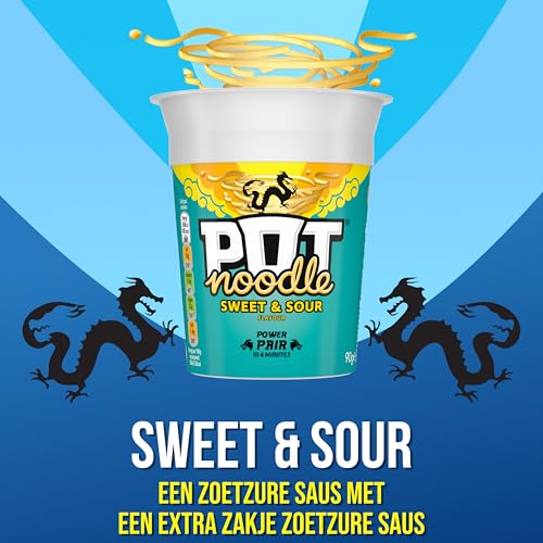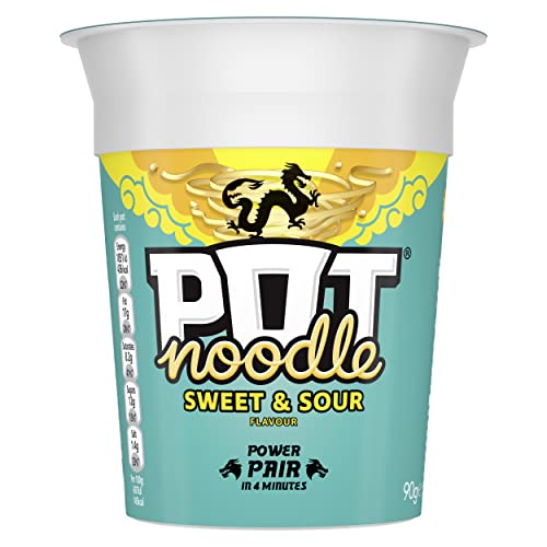 Specification: Pot Noodle Sweet & Sour Standard Pot instant vegan* snack quick to make noodles, 12 x 90g