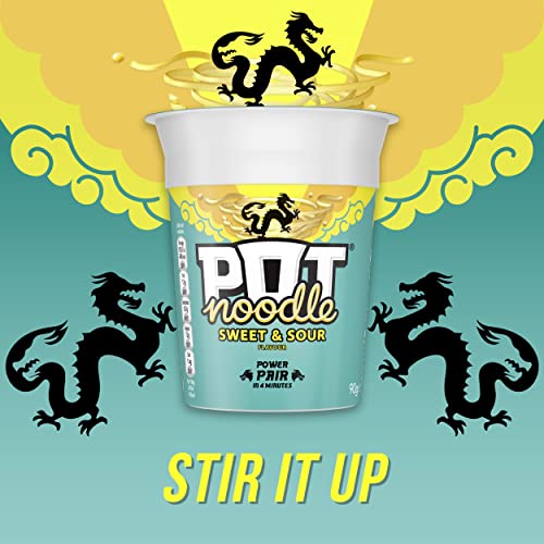 Hungry but short on time? For a taste of the original power pair from the Orient, try Pot Noodle Sweet & Sour Standard Pot from the nation’s favourite instant noodle brand**. We’ve brought together our classic noodles with vegetables and a little sachet of Chinese sweet and sour flavour sauce. Sounds delicious, right? Plus it’s dead easy to make and it only takes 4 minutes, so even if you aren’t a master chef, you can get stuck in. If you’re hungry and looking for a quick, convenient and tasty solution, we’ve got the noodles for you. Stir it up… and enjoy! How to make it yourself? It’s simple and quick. Rip off the lid. Whip out the sachet. Add boiling water to fill level and re-cover with the lid. Leave alone for 2 minutes, then give it a stir before leaving for another 2 minutes. Finally, give it another stir as you add the pot noodle flavour sachet and dig in! Make sure to seize your opportunity and strike while the pot’s hot – do not reheat. Don’t forget to recycle the packaging – the lid and pot are both recyclable. Both cleverly convenient and deviously delicious, our Sweet & Sour Standard Pot has none of that artificial colour or preservative stuff and is suitable for vegetarians and vegans. Eat it up with NO worries. *Made to vegan standards. See the ingredients section for allergens. **Nielsen Retail Measurement Service for the Mini Meals – Pot snacks segment for the 52-week period ending 16/08/2022.