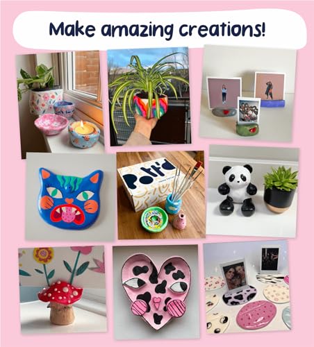 👍 #1 Best-Selling Diy Pottery Kit- New and Improved! Pott’d is the original home air-dry clay pottery kit. Your kit comes with everything you need to create your own unique clay creations at home. Get into a flow state of relaxed mindfulness as you tear off a lump of clay and squeeze, sculpt, mould and shape it into anything you can imagine. The perfect pottery kit to gift to a loved one, share with a partner, or settle down on a quiet evening for some precious solo creative time.