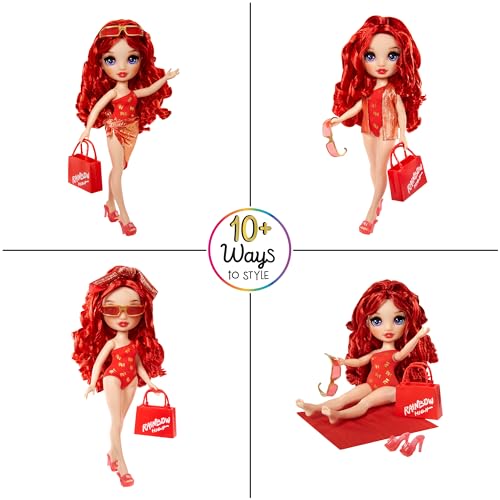 Rainbow High Swim & Style – Ruby (Red) – 28 cm Doll with Shimmery Wrap to Style 10+ Ways – Removable Swimsuit, Sandals, Fun Play Accessories – Kids Toy – Great for Ages 4-12 Years