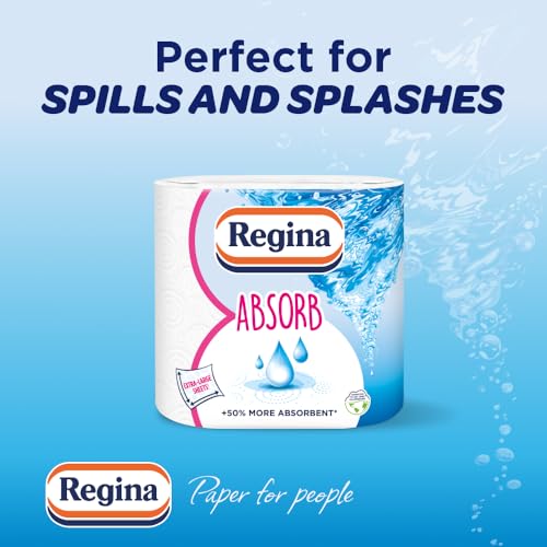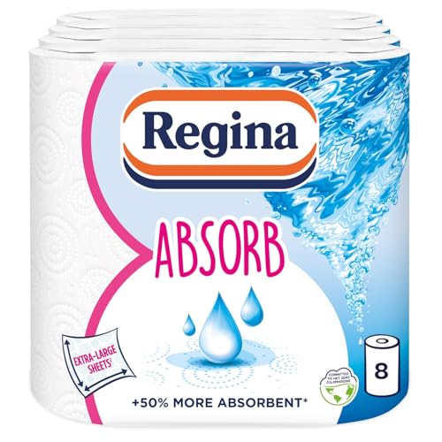 Regina Absorb Kitchen Towels – 8 Rolls Per Pack, Super Absorbent 2-ply Kitchen Towels, 75 Sheets Per Roll, Extra-large Sheets, 50percent More Than Previous XXL Products, Easy Open Pack
