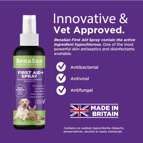 Specification: RenaSan Animal First Aid Spray (100ml) – Wound Disinfection, Kills Bacteria & Stops Itching, Alcohol-Free, Non-irritating, for Dogs, Cats & all other animals.