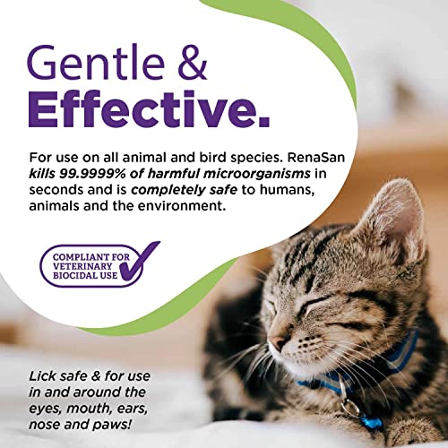 GENTLE & EFFECTIVE FOR PETS & LIVESTOCK: RenaSan antibacterial spray is the most effective first aid spray for dogs, cats, birds, small pets, reptiles and livestock. It’s 100% tested & approved for use all over your pet, including eyes, ears, nose and around the mouth (Lick-safe).