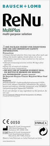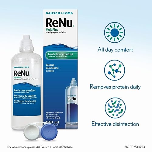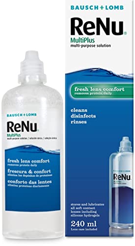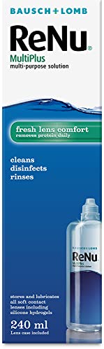 Specification: ReNu MultiPlus Multi-Purpose Contact Lens Solution, 240ml, for Soft Contact Lenses, Moisturise, Remove Protein, Clean, Disinfect, Lubricate, Rinse and Store Your Lenses, Lens Case Included