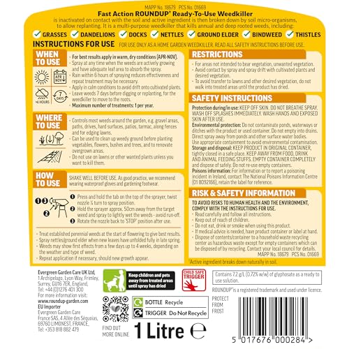 Fast action ready to use weed killer that kills the weeds and roots with visible results in 1-2 days