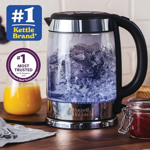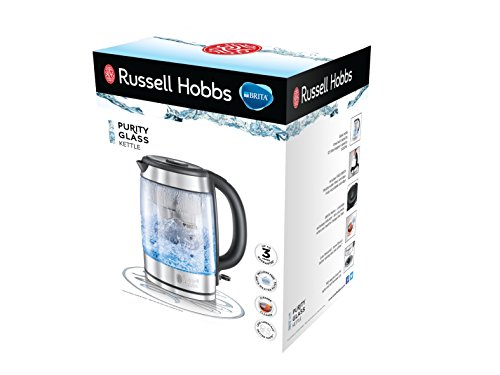 Russell Hobbs Brita Filter Purity Glass 1.5L Electric Cordless Kettle for Cleaner, Clearer Water (Brita Maxtra+ Cartridge inc with Replacement Reminder, Fast Boil 3KW, Perfect Pour spout) 20760-10