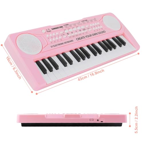 Shayson Keyboard Piano for Kids 37 Keys Music Keyboard with Microphone Portable Musical Instrument Toy Electronic Piano Birthday Gifts for Girls Ages 3-12 Pink