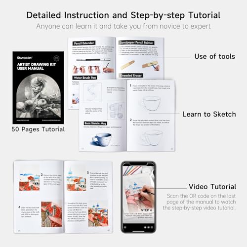 Specification: Shuttle Art 124 Pack Sketching and Drawing Pencils Set, Sketch Art Pencil Set with 4 Drawing Pads, Graphite Pencils in Zipper Case, Colouring Pencils for Artist Sketching, Art Set for Adults, Beginner