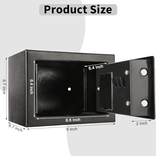 ❥EASY TO INSTALL: 4 AA batteries control battery digital panel (batteries not supplied). Pre-Drilled holes inside the safe for home give you the option to mount it freestanding or permanently with the included screws. The home safe comes with instructions, is easy to install and is just the right size to hide in any suitable location.