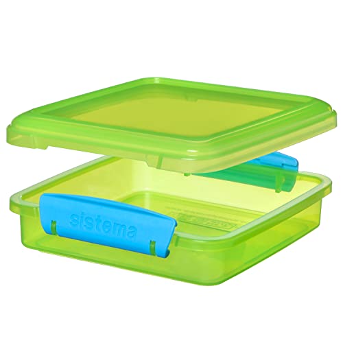 Specification: Sistema Lunch Sandwich Boxes | 450 ml | Airtight School Lunch Boxes | Assorted Colours | 3 Count