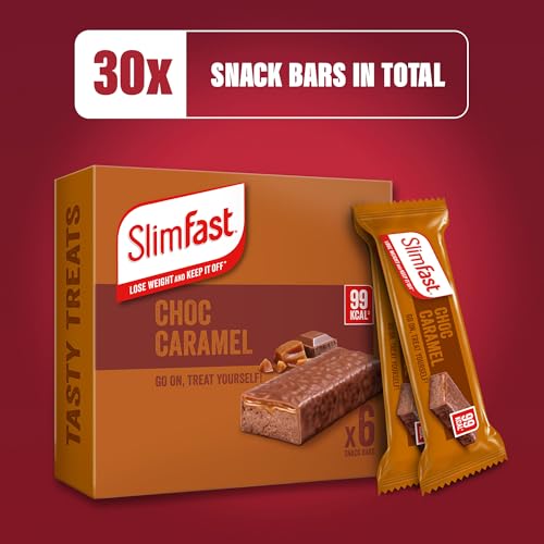 SlimFast Snack Bar, Low Calorie Snack, Choc Caramel Flavour, 30 X 26 G Multipack (Packing May Vary)