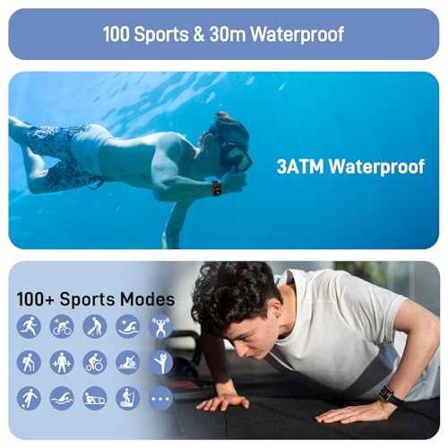 🏃【100 Sports Modes & IP68 Waterproof】This fitness watch supports 100 sports modes such as walking, running, cycling, cricket, and soccer, allowing you to visually read sports data (steps, distance, calories, etc.) on the smart watch. To help you train scientifically and achieve your fitness goals, it is the best choice for fitness enthusiasts. The smart watch is IP68 waterproof and can be worn when swimming, washing hands, or in the rain, it is not recommended for use in hot water or seawater.