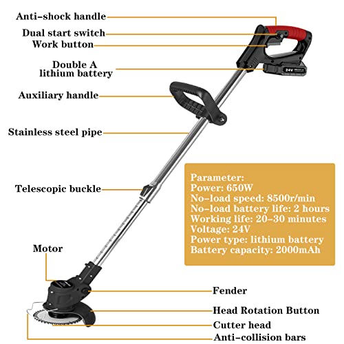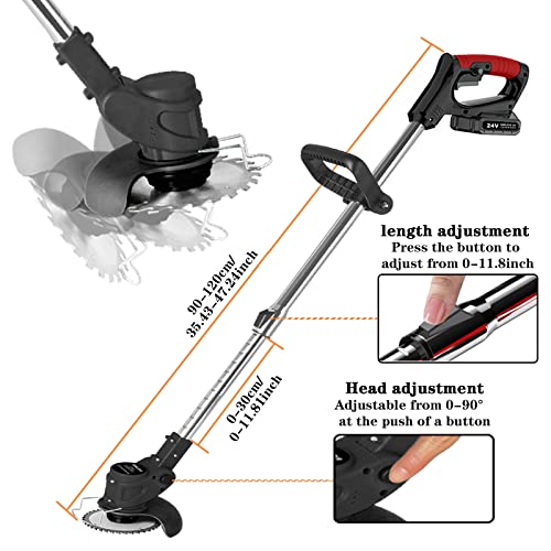 Specification: SMILOVII 24V Cordless Strimmer, Telescopic Lightweight Grass Trimmer with 6xMetal Blades & 10xPlastic Blades, 2 x 2000mAh Battery, Electric Garden Strimmer Grass Cutter for Lawn Edger Pruning Weed