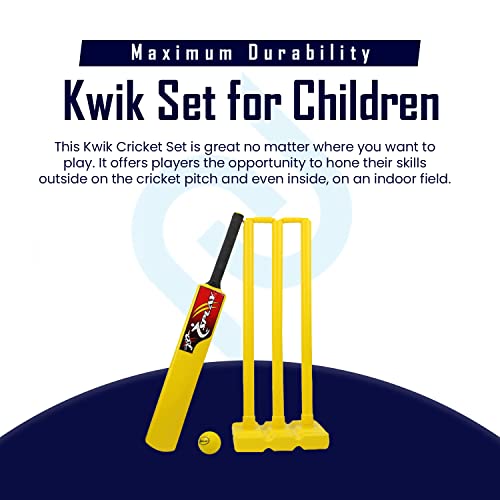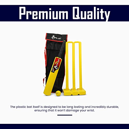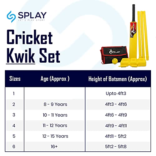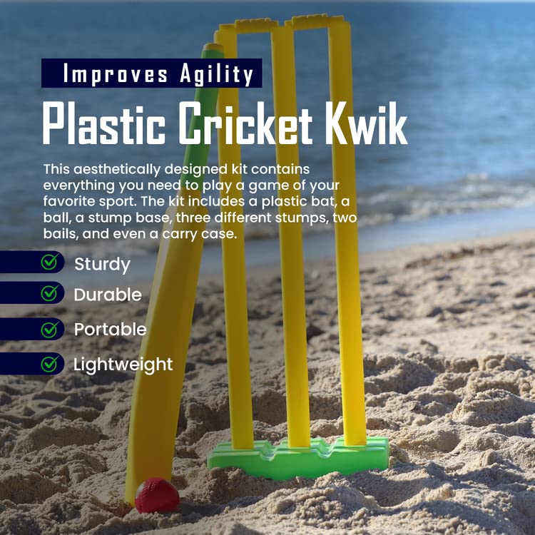 Specification: Splay Plastic Cricket Kwik Set for Children and Adults with Carry Bag – Quick Beach Set Suitable for Indoor Outdoor use Yellow Kit. Set includes Plastic Cricket Bat, Stumps Bails Windball, Stump Base and Carry Bag