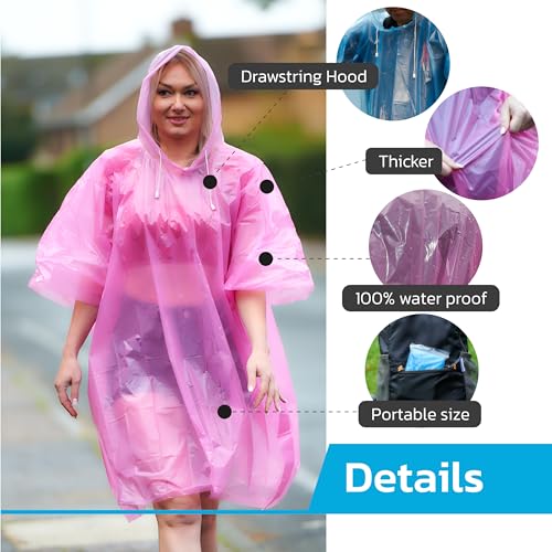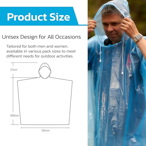 Start and Drive Ltd Poncho Rain Coat Waterproof Plastic Adult Size with Hoods men and women emergency disposable Pocket size Raincoat Thin and Strong Hiking Keep Dry