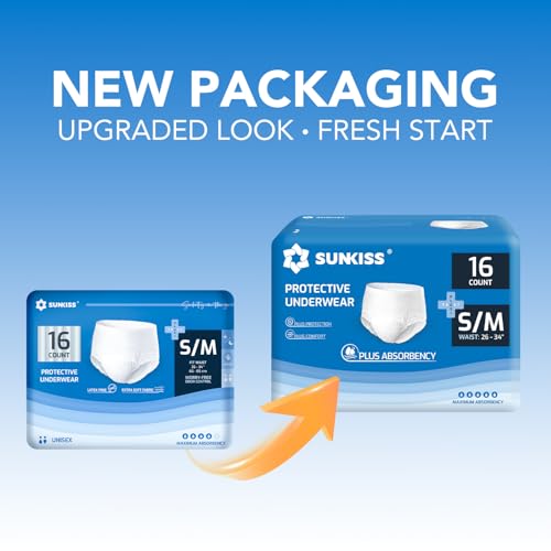 Specification: SUNKISS TrustPlus Incontinence Pants for Men and Women, Adult Pull Ups, Disposable Protective Underwear, Maximum Absorbency, Odour Control, Small/Medium, 16 Count