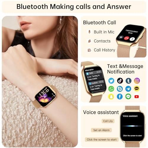 Bluetooth Calls & AI Voice Assistant: Stay connected effortlessly. This feature-rich smart watch women supports hands-free calling, ensuring you never miss important calls while driving, working out, or busy at work. Enjoy exceptional battery life even with frequent calls and voice commands. The built-in AI voice assistant streamlines tasks and workouts, making life easier – just ask.
