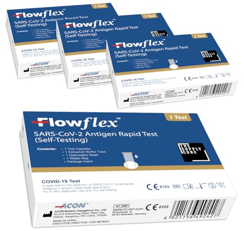 Specification: The Supply Cube Flowflex One Step Lateral Flow Test Kit | 4 Single Packs | One Step Test for Sars-CoV-2 Antigen |Covid-19 Self Testing Rapid Test | Not for Travel | 4 Pack Expiry OCT 2025