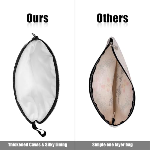 🎁【PREMIUM MATERIAL】: This Versatile Makeup Bag is made of high quality 100% Canvas, Silk feeling Lining.Can be used as Toiletry Bag, Cosmetic Bag,Pencil Bag,Wash Bag,Travel Accessories Pouch,Toiletry Makeup Case.