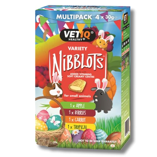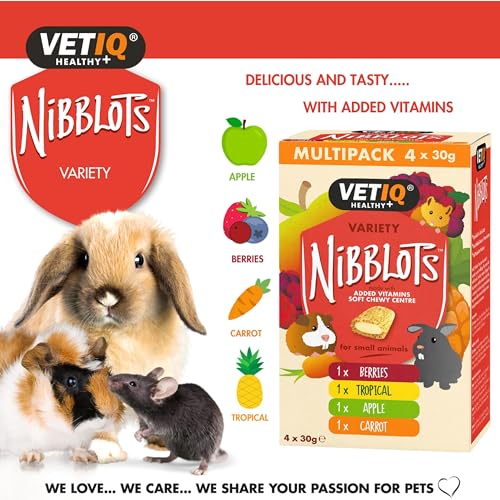 Specification: VETIQ Nibblots Treats Variety Pack with Added Vitamins in a Soft Chewy Centre for Small Animals, Suitable For Rabbits, Guinea Pigs & Hamsters, 30 g (Pack of 4)