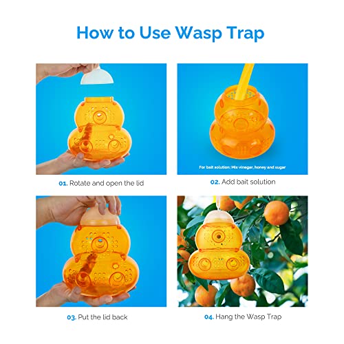 EFFECTIVE WASP TRAP: This wasp trap safely and quickly eliminates wasps, especially near fruit, vegetables, and food scraps. It’s also effective against fruit flies, gnats, and functions well as a bee trap or wasp nest killer alternative.