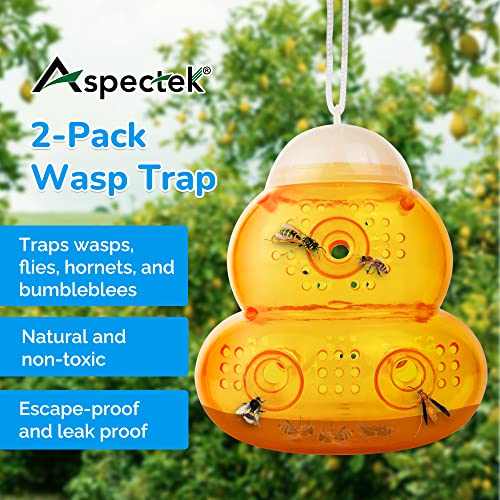 Wasp Trap 2 Pcs, Effective Bee and Wasp Nest Killer traps for Outdoor-Indoor, Yellow Jacket Traps, Bee trap, Hornet Trap, Lightweight Wasps Catcher, Hourglass-Shaped ASPECTEK Fly control