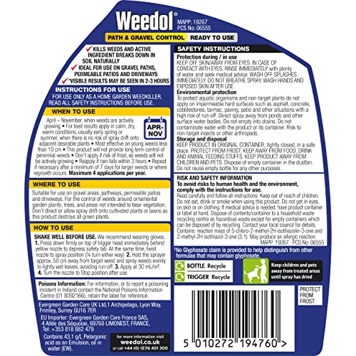 Specification: Weedol Path & Gravel Weedkiller, Ready to Use, 1L