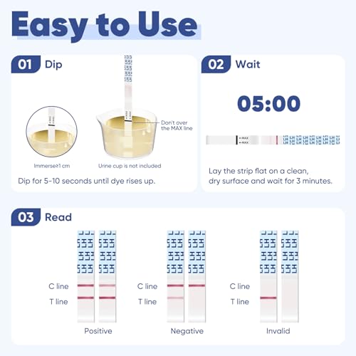 Easy to Use: Don’t use the first morning urine. We suggest test on the same time daily. Immerse the strip into the urine for 3 seconds and lay it flat. Wait for 5 minutes and then read the results. Don’t read it after 5 minutes.