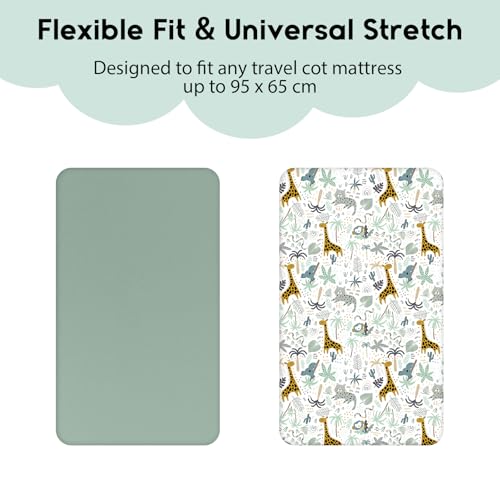 Specification: Yoofoss Cozy & Breathable Travel Cot Mattress Sheets – 95 x 65cm Fitted Sheet 2 Pack Green Giraffes