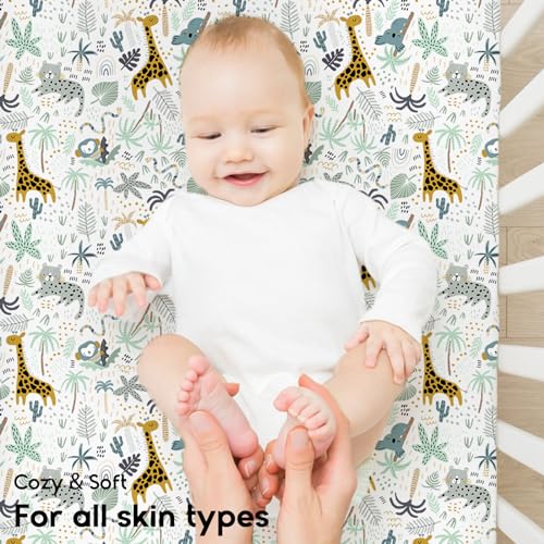 Yoofoss Cozy & Breathable Travel Cot Mattress Sheets – 95 x 65cm Fitted Sheet 2 Pack Green Giraffes