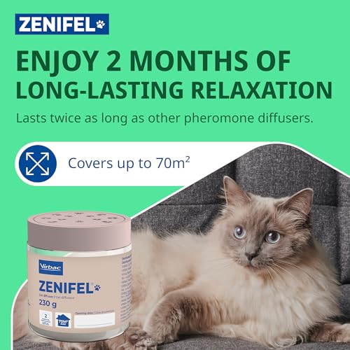 LONG-LASTING CALMING EFFECT: Offers up to two months of continuous calming effects, significantly longer than other pheromone products. The Zenifel Gel Diffuser covers areas up to 750 square feet, making it perfect for your home.