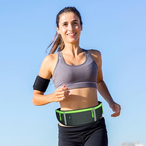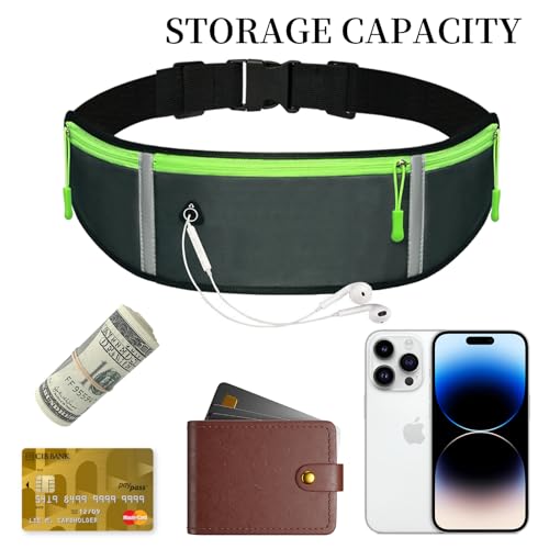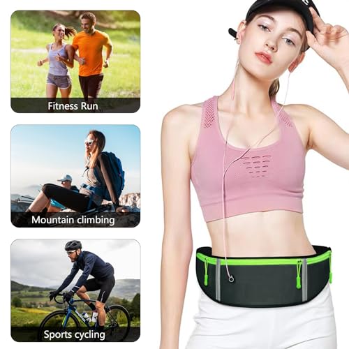 Running Fanny Pack, Running Belt for Women & Men, Running Bumbag, Travel Pouch Belt, Phone Fanny Pack with Reflective Stripes and Headphone Hole, Waterproof Nylon, Adjustable Waist Belt for Outdoor Activities