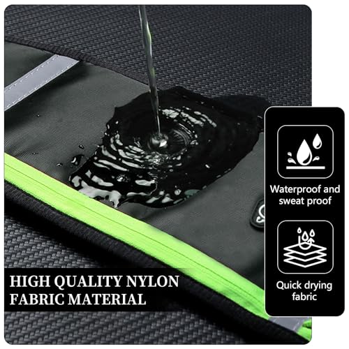1.Waterproof Nylon Fabric: Made from high-quality waterproof nylon fabric, this running fanny pack keeps your essentials dry and protected during outdoor activities, even in light rain or wet conditions.