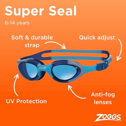 Specification: Zoggs Super Seal Kids Swimming Goggles, UV Protection, Quick Adjust Split Yoke Comfort Strap, Fog Free Clear Swim Goggle Lenses, Ages 6-14